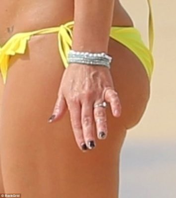 While the singer looked gorgeous in Yellow swimsuit and a wide brimming hat, the most iconic accessory she had on was the ring on her finger.