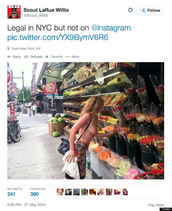The 22-year-old, one of Bruce and Demi Moore‘s three daughters, walked through New York City (where it’s actually legal for women to walk around topless) without a shirt on May 27, 2014, and posted two photos on the picture sharing social network.