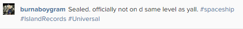 Though details are sketchy at the moment but Burna Boy seems pretty excited, enough to share the good news with his fans on Instagram a few minutes ago saying he’s ‘not on the same level as y’all’.