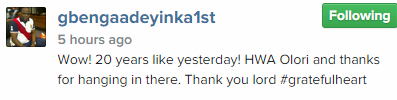 Gbenga, now a popular comedian and event compere, shared pictures of his wife on social media with the caption: ’20 years like yesterday, HWA Olori, thanks for hanging in there’ as well their old wedding picture.