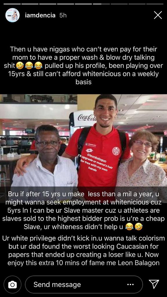 This did not go down well with Dencia who immediately attacked the footballer and hauled insults at his family.