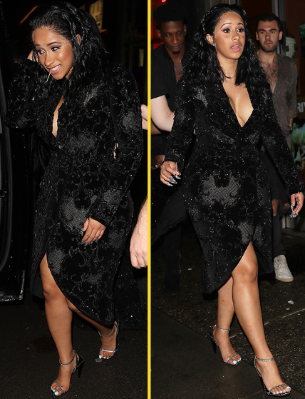 New York-based rapper, Cardi B, who came into the limelight after her single, ‘Bodak Yellow’, showed up at the New York Fashion Week looking stunning in a $5,000 black dress that had a plunging neckline.