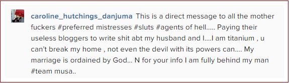 Laughing off the speculation in a way that is not funny, Caroline really let the expletives fly against those she called ‘sluts, motherf..kers and preffered mistresses.’