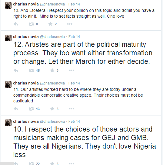 Trying to make peace between both parties, Charles Novia, who is known for his own controversial views on issues, also took to Twitter not long ago to address the issue in a series of tweets.