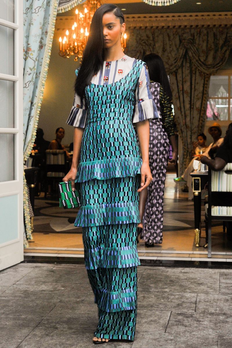 The collection featured feminine pieces made of Ankara prints mixed with pieces in graphic patterns, organza, aso-oke and bejeweled fabrics.