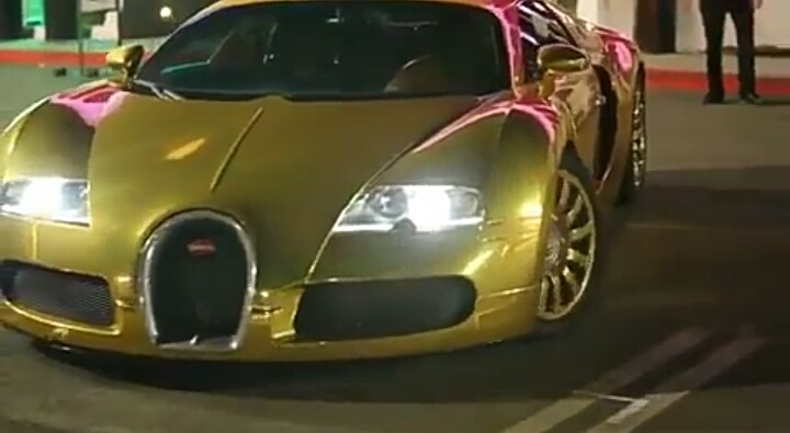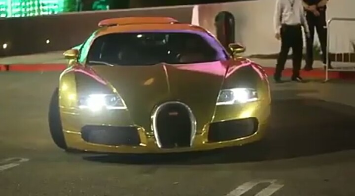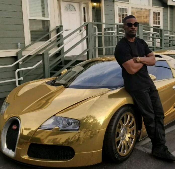 Hollywood star, Jamie Foxx pulled up for the recent movie premiere of Baby Driver in his hard-to-ignore, $2m gold Bugatti Veyron.