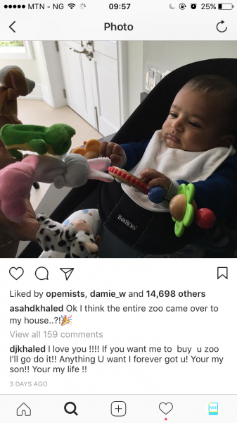 While we were still busy trying to get our hearts to stop melting at the sight of every new video or photo of the little cutie, Khaled decided to take the love a step further by leaving cute comments on every photo or video posted to Asahd’s page (which he probably created and runs by himself).
