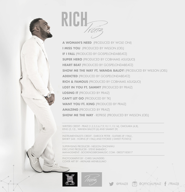 X3M Music act Praiz has finally released the track list and final artwork for his hugely anticipated debut album, Rich and Famous.