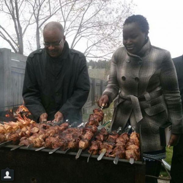In this barbecue picture obtained by NET, the couple seem to be enjoying themselves as Anselm does the meat roasting while Emmy can’t wait to eat.