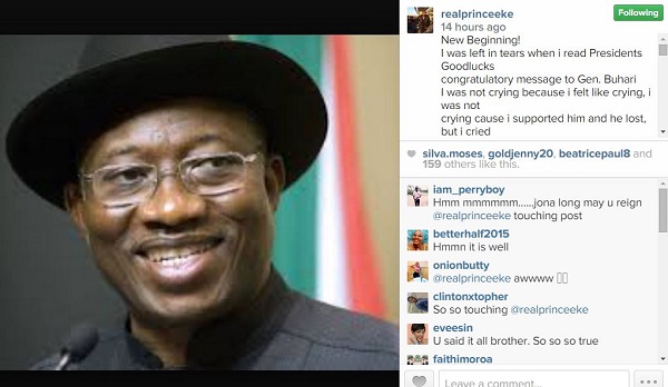 After President Goodluck Ebele Jonathan humbly accepted his defeat to Gen. Muhammadu Buhari and also congratulated him on winning the 2015 Presidential election, Nollywood actor, Prince Eke has described the outgoing President as a good and humble man for his good gesture.