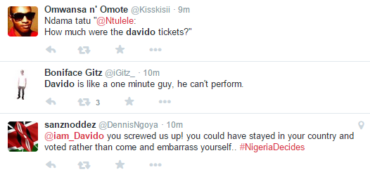 As we earlier reported, HKN boss, Davido has been under fire as Kenyan fans are not taking it easy with him for giving them a poor performance on Saturday, March 28, 2015.