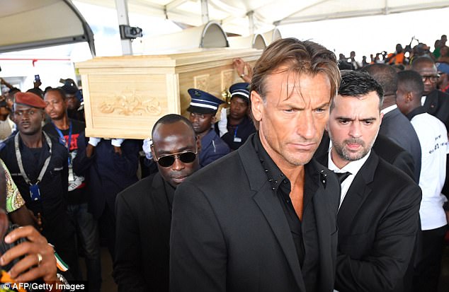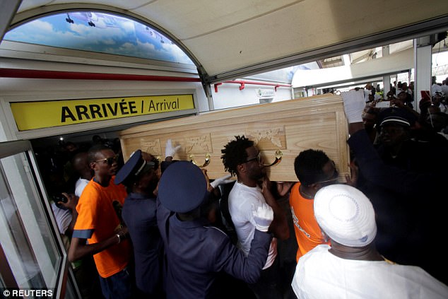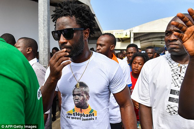 Ivory Coast players, including former Manchester City striker Wilfried Bony, were among the pallbearers carrying the midfielder’s coffin when it arrived at Port Bouet airport in Abidjan.
