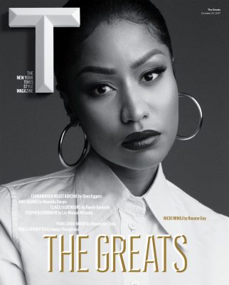 T, The New York Times‘ style magazine has released seven covers for its ‘2017 The Greats’ October issue. The edition features Nicki Minaj; the writer, Chimamanda Ngozi – Adichie; and five others that includes an artist, a composer, fashion designer and an actor.