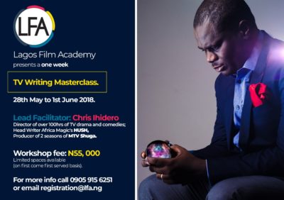 Following a successful third edition of his free storytelling workshop, Nigerian filmmaker and entrepreneur Chris Ihidero takes things one step further by headlining at an all-new TV writing masterclass being run this May: from May 28 to June 1; by the newly-launched Lagos Film Academy.