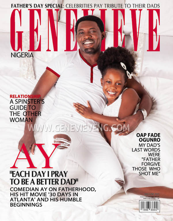 Ace comedian, Ayo Makun, popularly known as AY covers the May/June edition of Genevieve Magazine alongside his daughter in commemoration of this year’s Fathers’ Day.