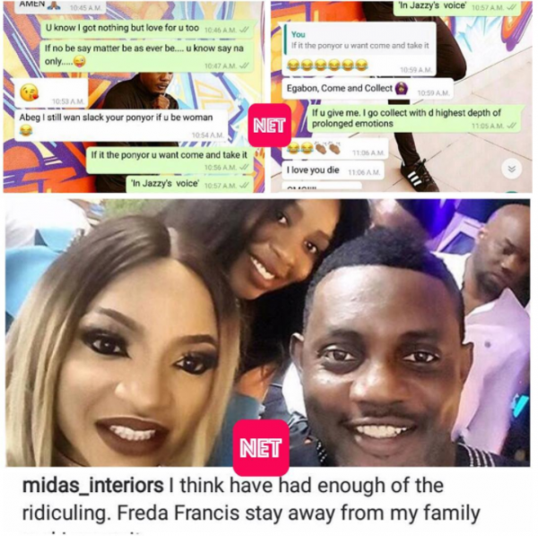 In an Instagram post which she later deleted, the mother of one asked Freda to stay away from her man, sharing flirty WhatsApp chats between AY and her while at it.