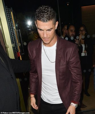 The Portuguese footballer was pictured with his girlfriend Georgina Rodriguez and his eight-year-old son, Cristiano Ronaldo Jnr after dinner at Zela Restaurant.