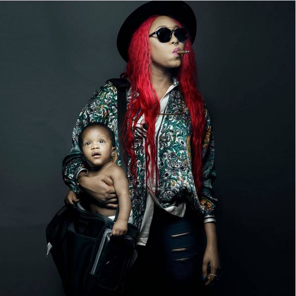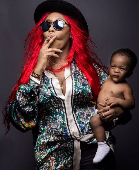 In one of the new photos, the Northside Inc act is seen carrying her months old cousin while puffing a cigar. As expected, this drew wide condemnations from many of her followers many of which are complaining about the moral implication and the health risk it possess for the little boy.