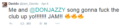Now, Davido is back home and he’s just confirmed another huge collaboration for the album. This time, it’s Mavin boss, Don Jazzy. And according to Davido, the joint with the super producer is a groovy club tune and it’s truly difficult not to believe him.