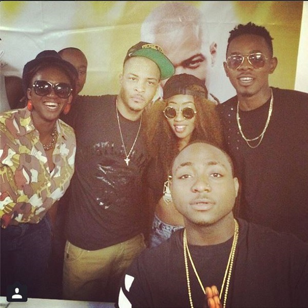 The Nigerian music acts, who are currently in Tanzania to perform at the Serengeti Fiesta gig, gathered for a photo snap with American rapper, T.I, who is also among the headliners yesterday.