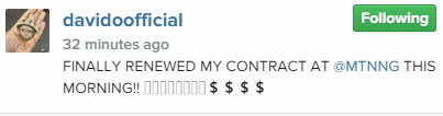 Davido has just renewed his deal with telco firm, MTN following weeks of speculation about his relationship with the brand.