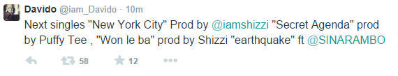 Davido reveals titles of his forthcoming singles