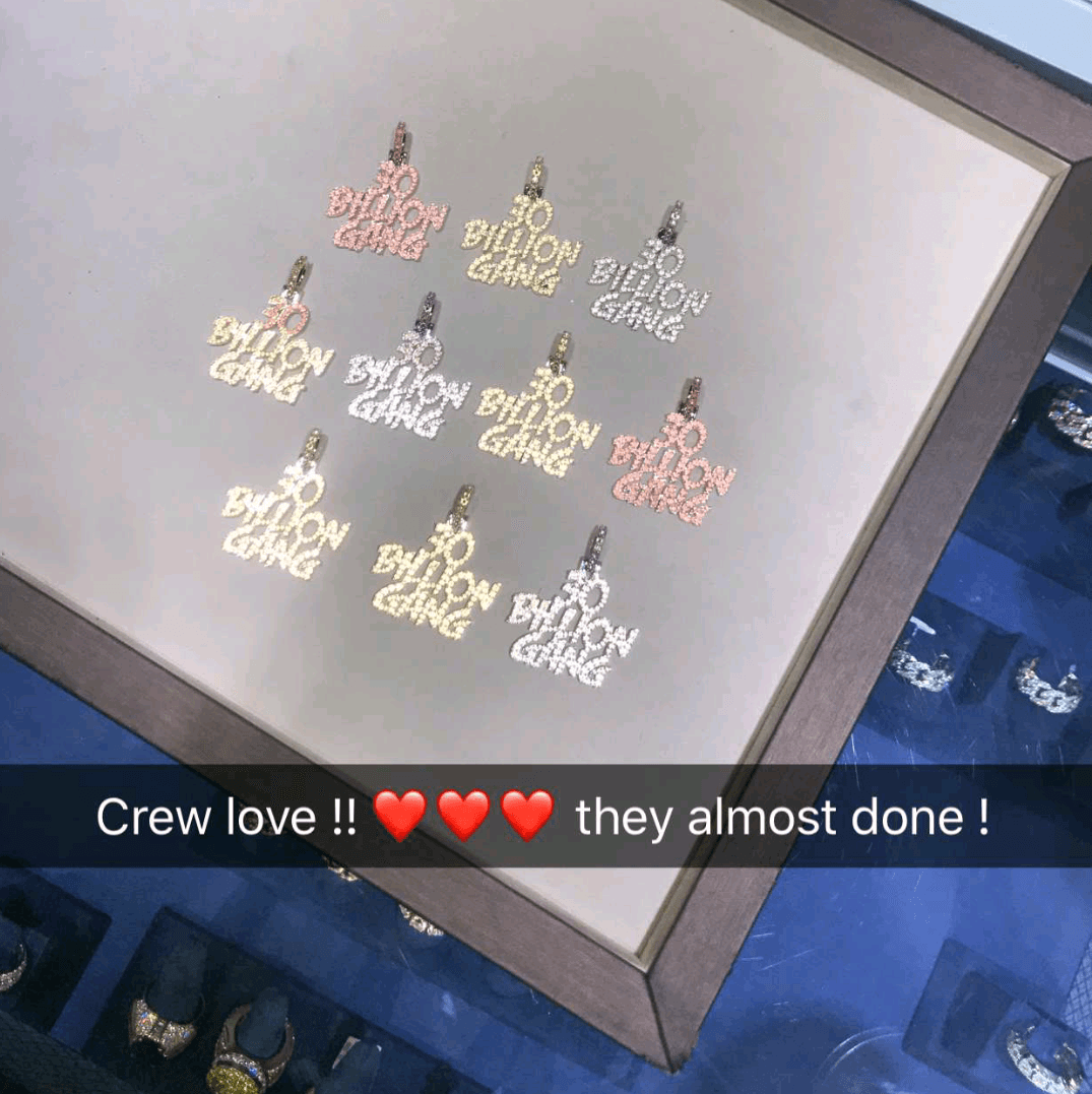 The DMW boss took to Snapchat to show off the diamond pendants he is making for his crew.