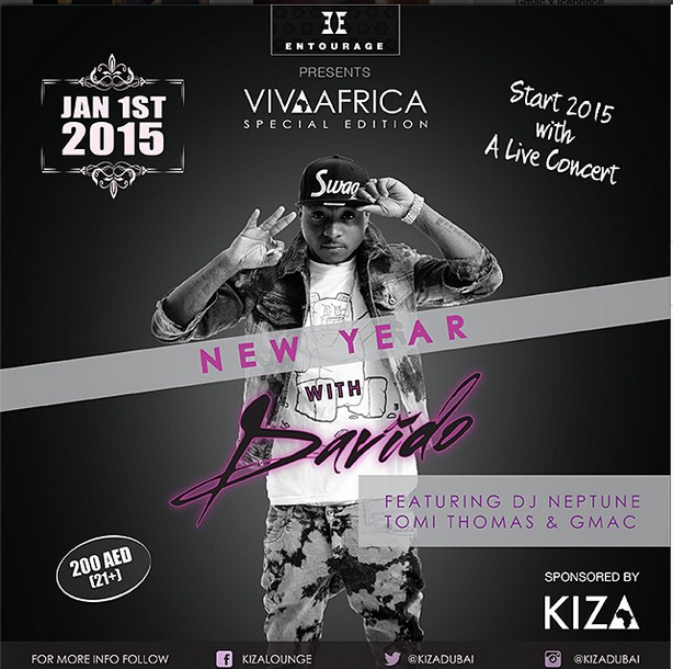 On January 1, 2015, BET award winner and African pop star Davido will headline a New Year concert in the United Arab Emirate city of Dubai.