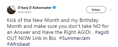 DB record boss Oladapo Oyebanjo popularly AKA D’banj has released a new single titled “Agidi'(which means”stubborn” in Yoruba) as he counts down to his birthday which is on June 9.
