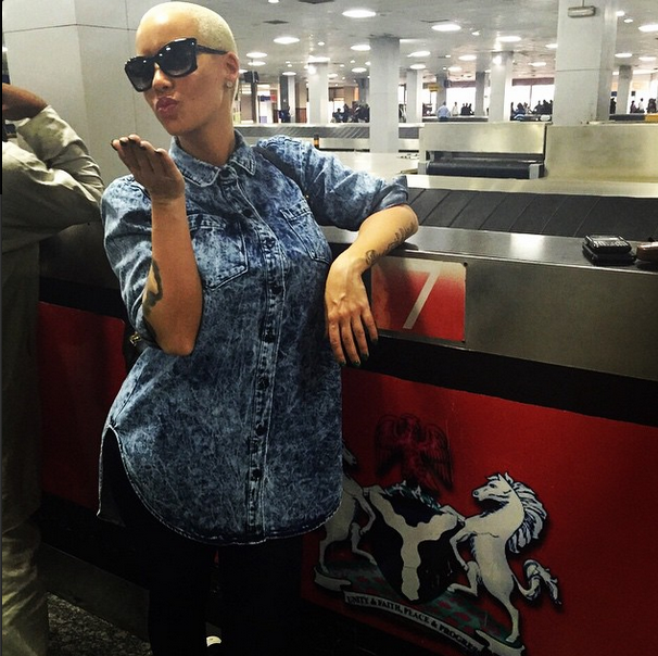 A few minutes ago, American diva, Amber Rose, arrived at the Murtala Mohammed International Airport all ready to host the kick-off party for D’banj’s 10th anniversary celebrations in the entertainment industry.