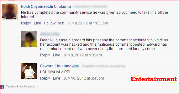 In July 2012, Special Ed’s mother Ndidi Onyemaechi Chukuma wrote the website. ‘He has completed the community service he was given so you need to take this off the Internet‘, she wrote via her Facebook account.