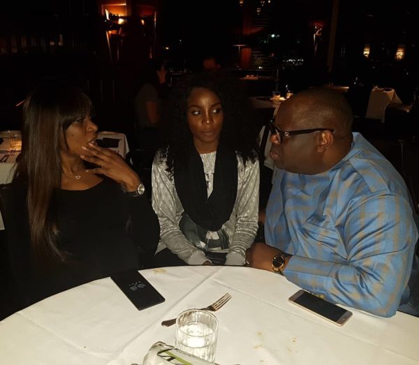 The Ovation Magazine publisher treated Linda Ikeji and her mum to dinner along with some other friends including singer Seyi Shay who was also spotted at the date out.