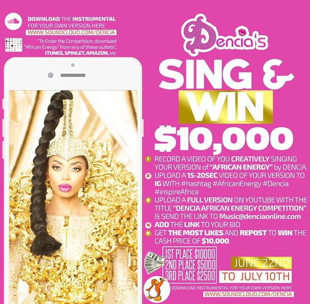 Controversial singer, Dencia has launched a competition which is aimed at improving the reception of her new song, ‘African Energy’. She dropped the song in May 2015 and has unveiled the contest that would see the winner smile home with $10k next month.