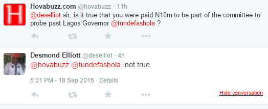 The ad hoc committee being chaired by the a mentor in politics Hon Rotimi Olowo, has Hon Alimi, Hon Fafunmi, … http://t.co/6WaX0AczLu — Desmond Elliott (@deselliot) September 18, 2015
