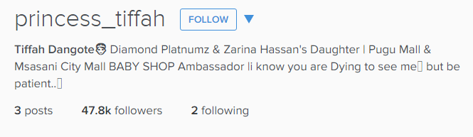 The new baby, already named Princess Tiffah Dangote is clearly enjoying one of the perks of being a celebrity child. In less than 24hours since she was born with just 3 posts on Instagram, little Princess Tiffah already has over 47k followers on her Instagram .