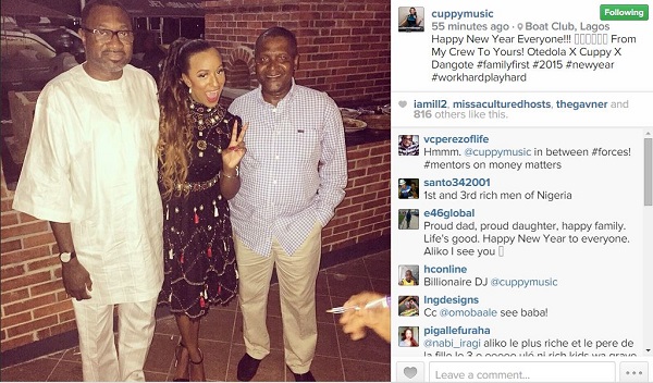 She captioned the photo: ‘Happy New Year Everyone!!! From My Crew To Yours! Otedola X Cuppy X Dangote #familyfirst #2015 #newyear #workhardplayhard.’