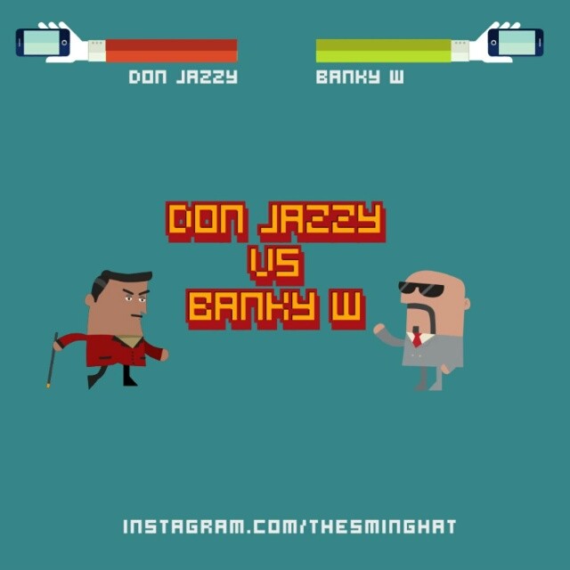 Popular animator and illustrator @thesmilinghat got bored and decided to create a 2D animation of Nigerian celebrities Don Jazzy and Banky W in a fight (think street fighter on Nintendo).
