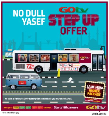 From January 15, active and disconnected DStv Access, Family, Yanga, Confam, Compact, and Compact Plus customers who pay for their current packages will be bumped up to a higher package for 30 days of access to a wider viewing experience. Step Up also allows existing GOtv customers to see varied programming available across higher packages, at the price of a lower package, making great content more accessible to a wider group of customers.