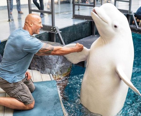 The Jumanji star, 46, posed with a Beluga Whale and Sea Lion during his day out, while also sharing an image of a Whale Shark.