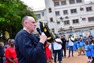 Accompanied by MTN executives and staff, Mr Moolman spent the time speaking with the teachers and children, distributing gifts. He also asked that Teacher’s efforts be applauded for their indispensable role in shaping our future leaders.