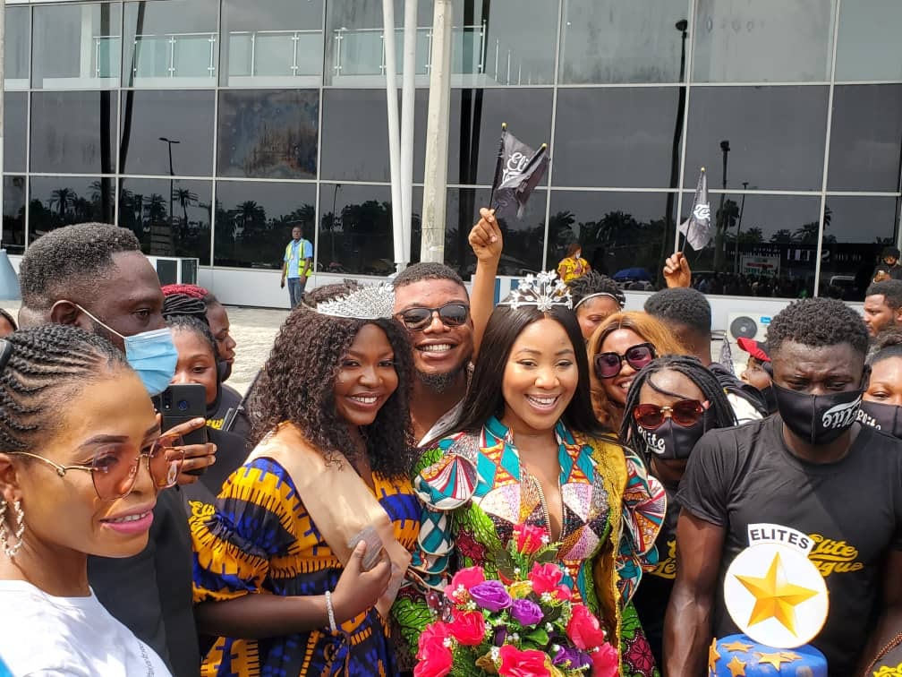 Dressed impeccably and carrying trumpets with chants of praises for their role model, the fans chanted and gave Erica a royal welcome.
