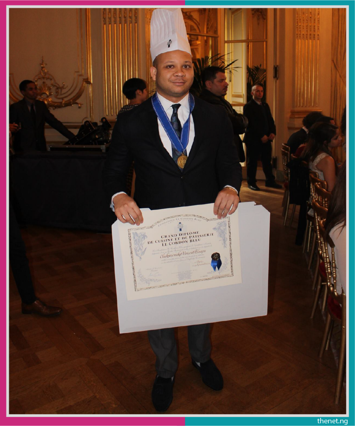 Emeka’s Grand Diplôme certificate is “the most prestigious culinary qualification at Le Cordon Bleu, combining the study of our Diplôme de Cuisine and Diplôme de Pâtisserie. This accredited professional chef diploma is awarded after nine months of full-time study,” the institute wrote on its website.