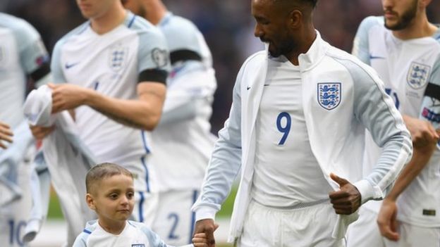The striker also walked out with Lowery as he boy led England out for a World Cup qualifying match against Lithuania in March – Defoe scored in the game.