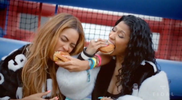 Nicki Minaj and Beyonce bonded for the video of ‘Feeling Myself’ off The Pinkprint album and it’s exclusively released through Jay Z‘s streaming music service, Tidal on Monday, May 18, 2015.
