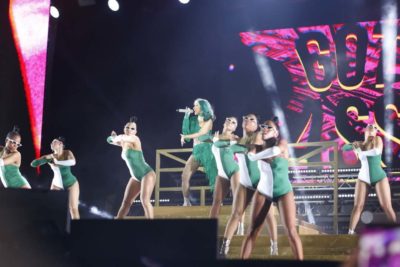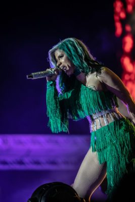 Entrance: For her entrance, Cardi B didn’t come on stage as soon as her set started. She sort of hung back for a few minutes rapping while her dancers went off on stage before joining them. The element of suspense drove the crowd into a frenzy and when she finally came on stage, the place basically erupted with screams.