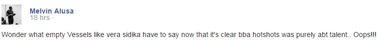 Getting right back at Vera is Melvin Alusa, who was evicted on Sunday, October 26, 2014 from the continental reality TV show after Vera Sidika had publicly condemned the contestants from Kenya for failing to prove themselves worthy and tagging the reality show ‘boring’.