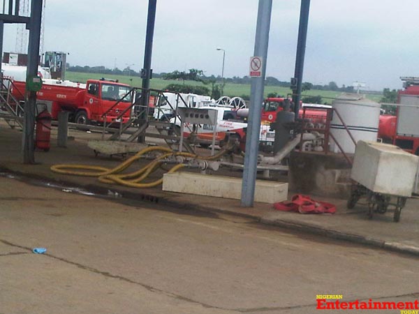 A discharge bay refueling station, housing tankers of PMS is said to have increased the fire shortly after the accident occurred causing the black flames rising up for hours. Fire fighters arrived shortly at the crash site to out the fire.