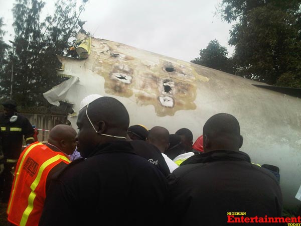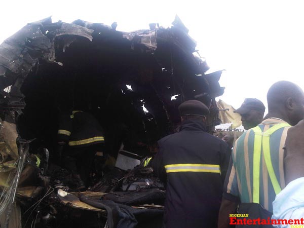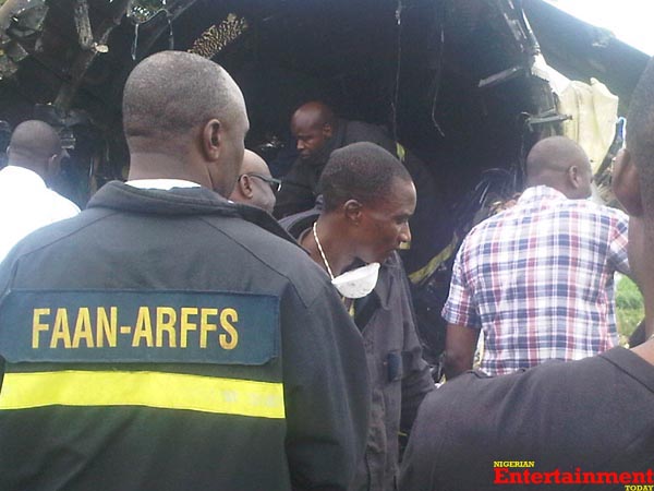 Officers of the Nigerian Police Force were also on site to assist airport authorities with preventing hundreds of people from getting close to the crashed plane.