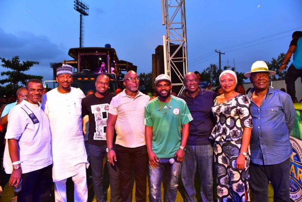 The award-winning rapper also channelled his inner footballer at the Star fan park pitch as he joggled the ball with senior football administrators including Chairman of the Nigerian Football Federation (NFF) Amaju Pinnick, and Shehu Dikko, the League Management Company chairman.