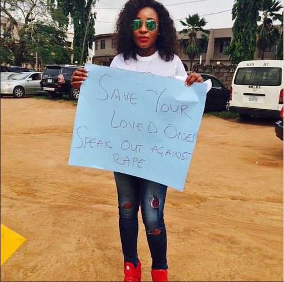 Nigerian actress, Ini Edo pulled a bold one by wearing a recreation of the exact dress Hollywood actress, Lupita Nyong’o wore to the 2014 Golden Globes.